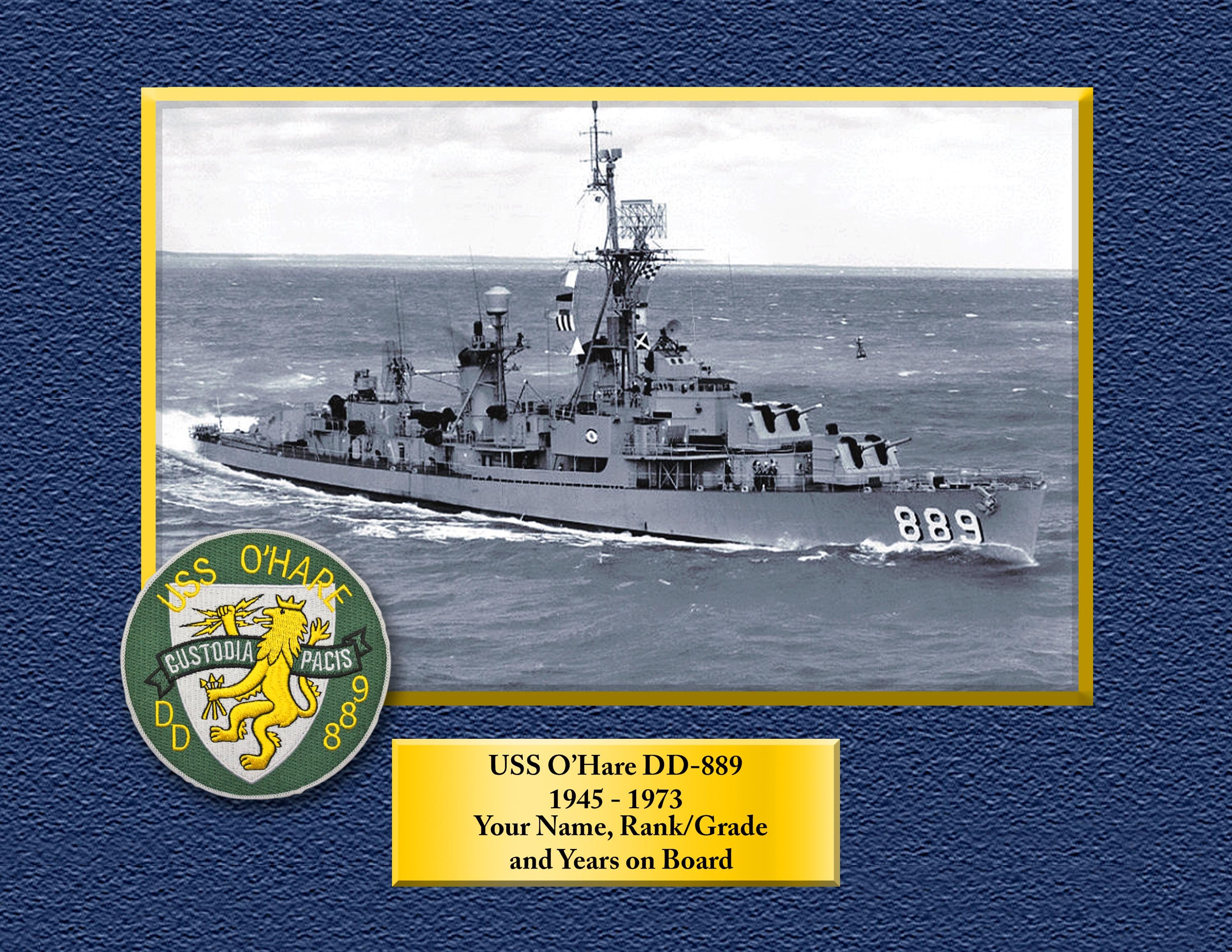 USS O"Hare DD889 Custom Personalized 8.5 X 11 Print of US Navy Ships Unique Gift Idea for any Occasions