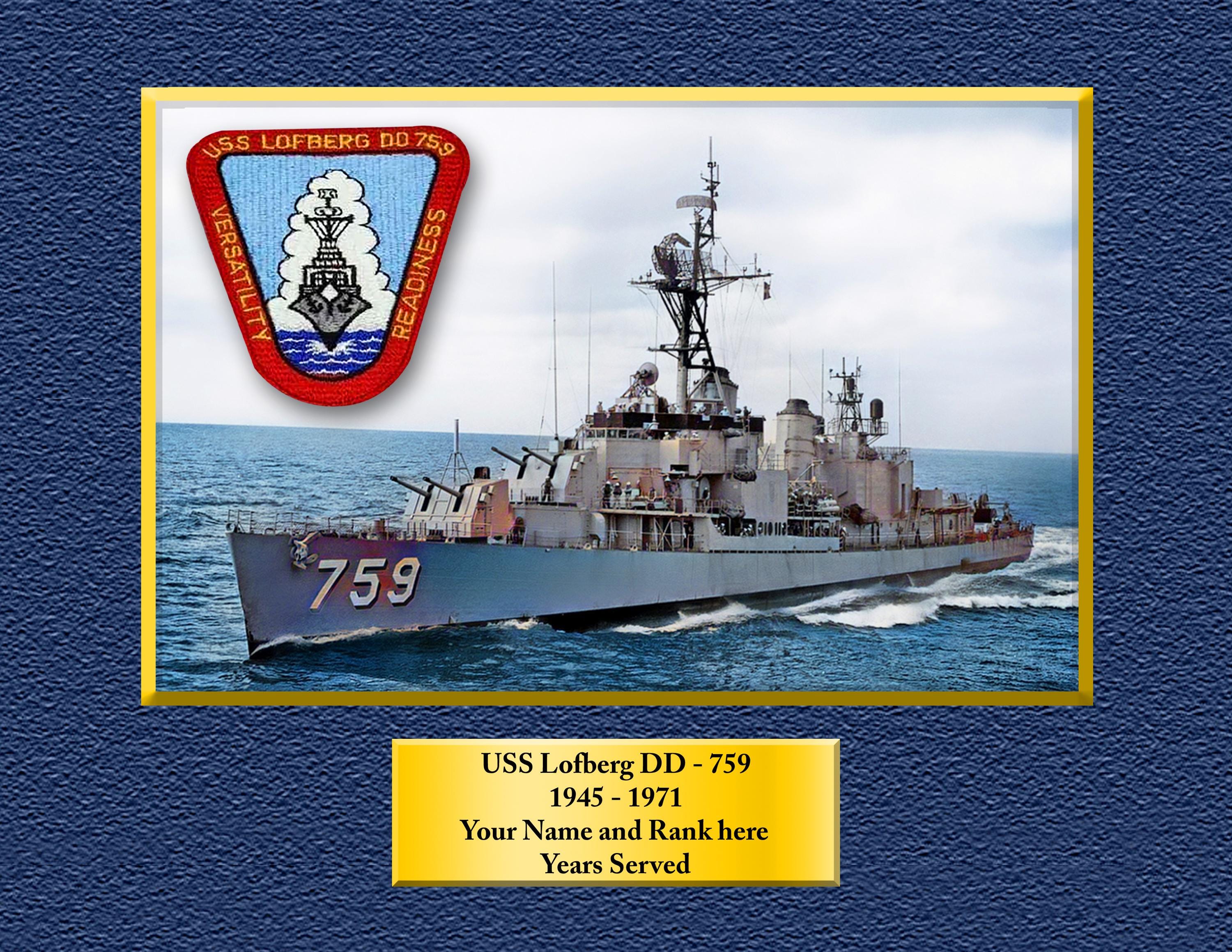 USS LOFBERG DD759 Custom Personalized 8.5 X 11 Print of US Navy Ships Unique Gift Idea for any Occasions